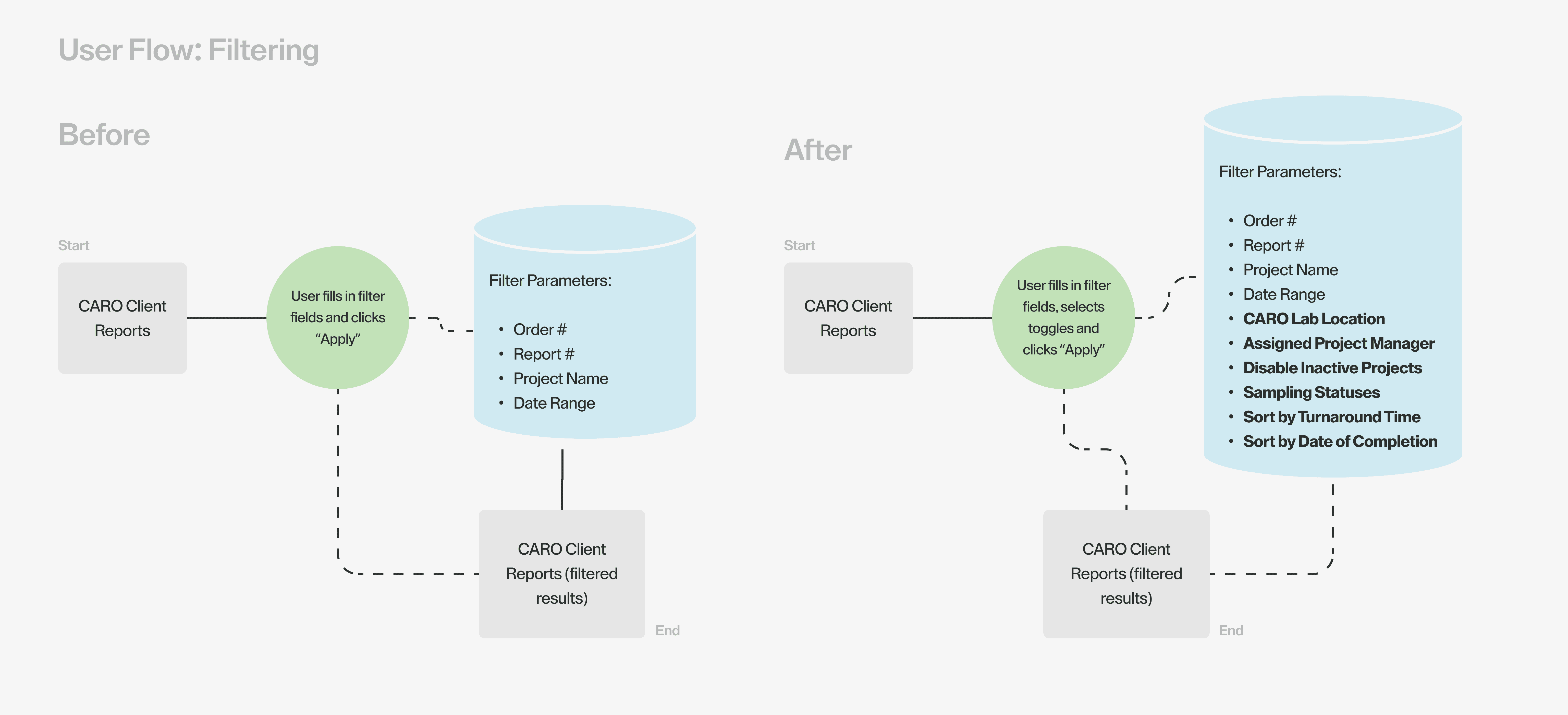 I was able to also work on a supporting feature that enabled easier discovery of project files for both the CARO staff as well as their clients. With many components that make up a project report, the main challenge of this feature lied in understanding the user journey to discover the most important filters.