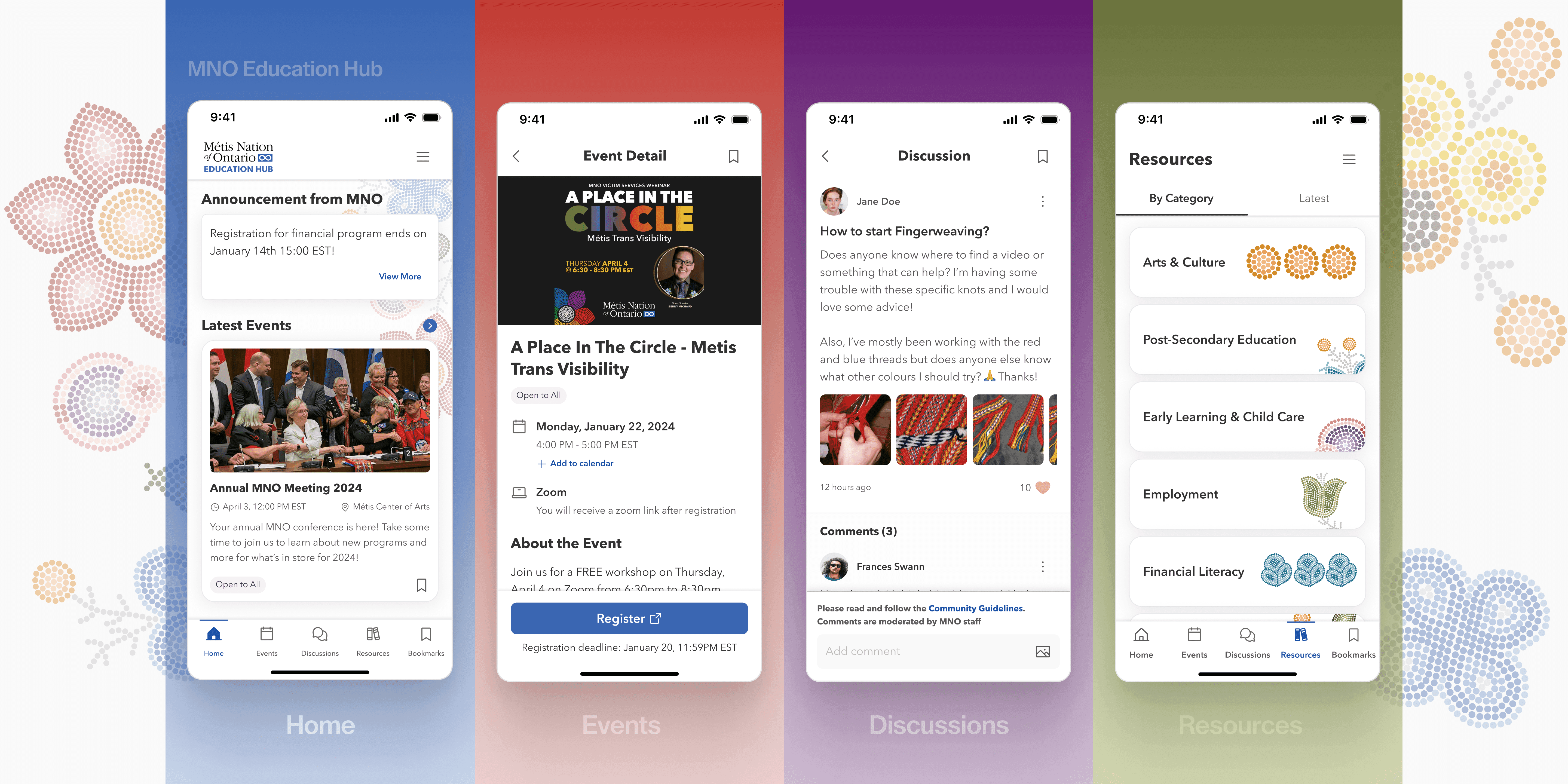 From a visual perspective, paying homage to the Métis culture through the use of cultural patterns and colours resonated with the MNO team; solidifying an everlasting extension of their culture in digital form.